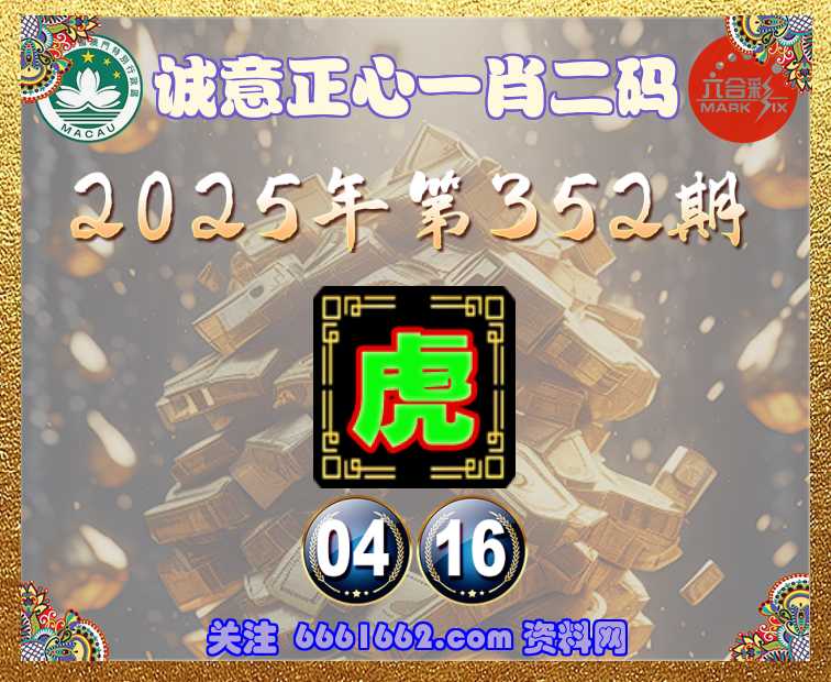352期:『诚意正心』 🧏♀️一肖二码🧏♀️【虎】【04.16】开:00准