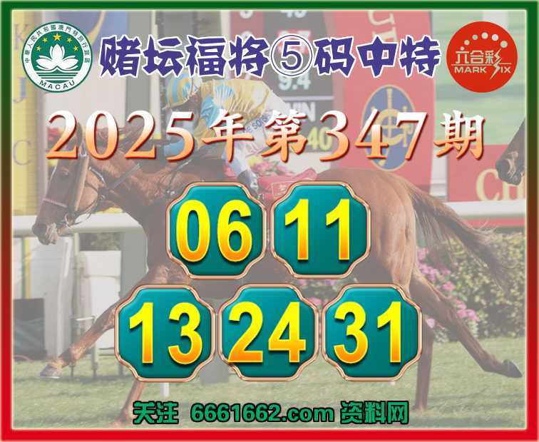 347期:〖赌坛福将〗 🎖️⑤码中特🎖️【06.11.13.24.31】开:13准
