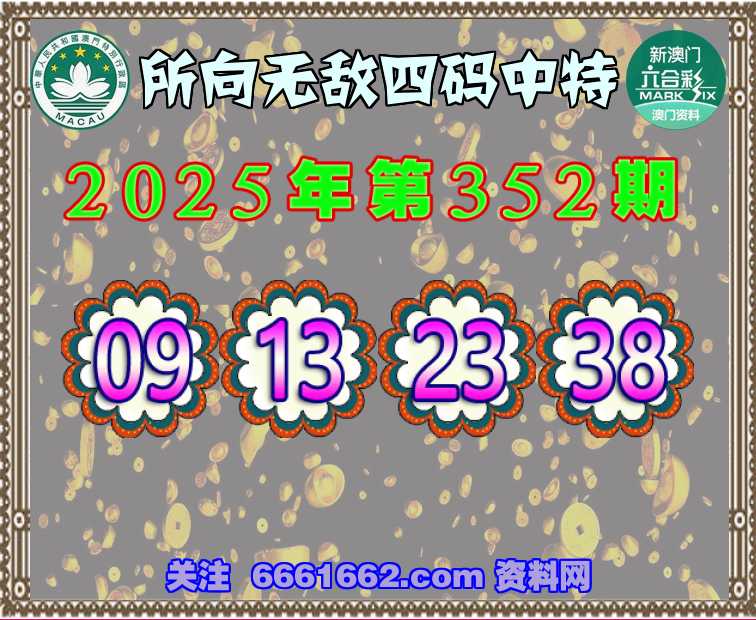 352期:『所向无敌』 👑四码中特👑【09.13.23.38】开:00准